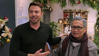 Season's Greetings from Cherry Lane is a sequel to last year's Hallmark movie Christmas on Cherry Lane, once again chronicling the holiday challenges facing couples living at the same address in three different time periods. It rejoined returning husbands Mike (Jonathan Bennett) and Zian (Vincent Rodriguez III) in 2024, preparing for Christmas with their adopted daughter Tina (Milana Wan) who has settled into the family since she joined them in the first film. Zian is busy working with her in secret to complete a Christmas project to give to Mike for the holiday. As for Mike, he's dealing with his own secret, having found the adopted Zian's birth grandfather. Mike attempts his own holiday surprise, getting the old man Danilo (Greg Amato), to town in time to celebrate Christmas with Zian, whom Zian has never met. But when he loses track of the elder man after the arrival of his flight, Mike goes into a panic, enlisting the help of the couples' friend and handyman Quinn (Robert Moloney) to get Danilo to the house. Keeping secrets presents some minor conflict for the couple, as they each attempt to keep the other in the dark, even as Mike's panic rises over the missing Danilo. In the end, Danilo finds his own way to Cherry Lane, leading to a heart-warming reunion for Zian. Tina unveils her project, a wreath made of Christmas cards, which leaves Mike speechless as it was a tradition his father started when he was young. They all come together, welcoming Danilo into the family. Zac Bellward appeared as younger Mike in a brief flashback to his teenage years with his father.